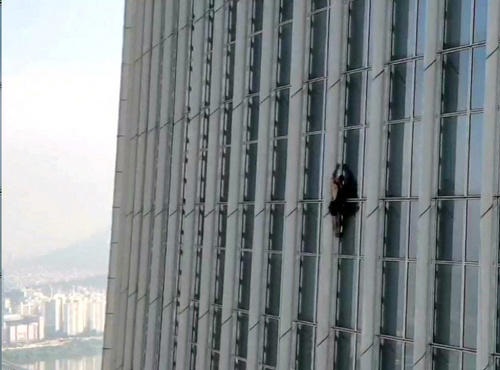 A dél-koreai rendőrség lecsapott egy brit pókemberre, aki hétfőn biztonsági öv nélkül nekivágott a világ ötödik legmagasabb épületének, a 123 emeletes szöuli Lotte World Towert.