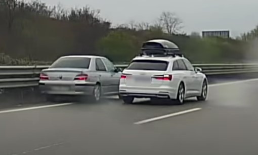 A szürke autó gazdája nem törődott a szalagkorlátokkal, csak azzal, hogy előzzön. Az előzés után maga mögött hagyta a fehér autót, kigyorsított, és sávot váltva jobbra tartott. A videót készítő sofőr csak ámult és bámult.
