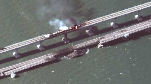 A krími híd fontos szerepet játszik az Ukrajnát támadó katonai csapatok utánpótlásában, ahol most 20 kilométeres dugók alakultak ki, mivel a közúti szakasznak csak az egyik oldala maradt használható, illetve valamennyi hídra felhajtó gépjárművet és azok csomagjait is részletesen átvilágítják.