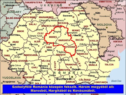 Ez a térkép jól mutatja, hol helyezkedik el Székelyföld,